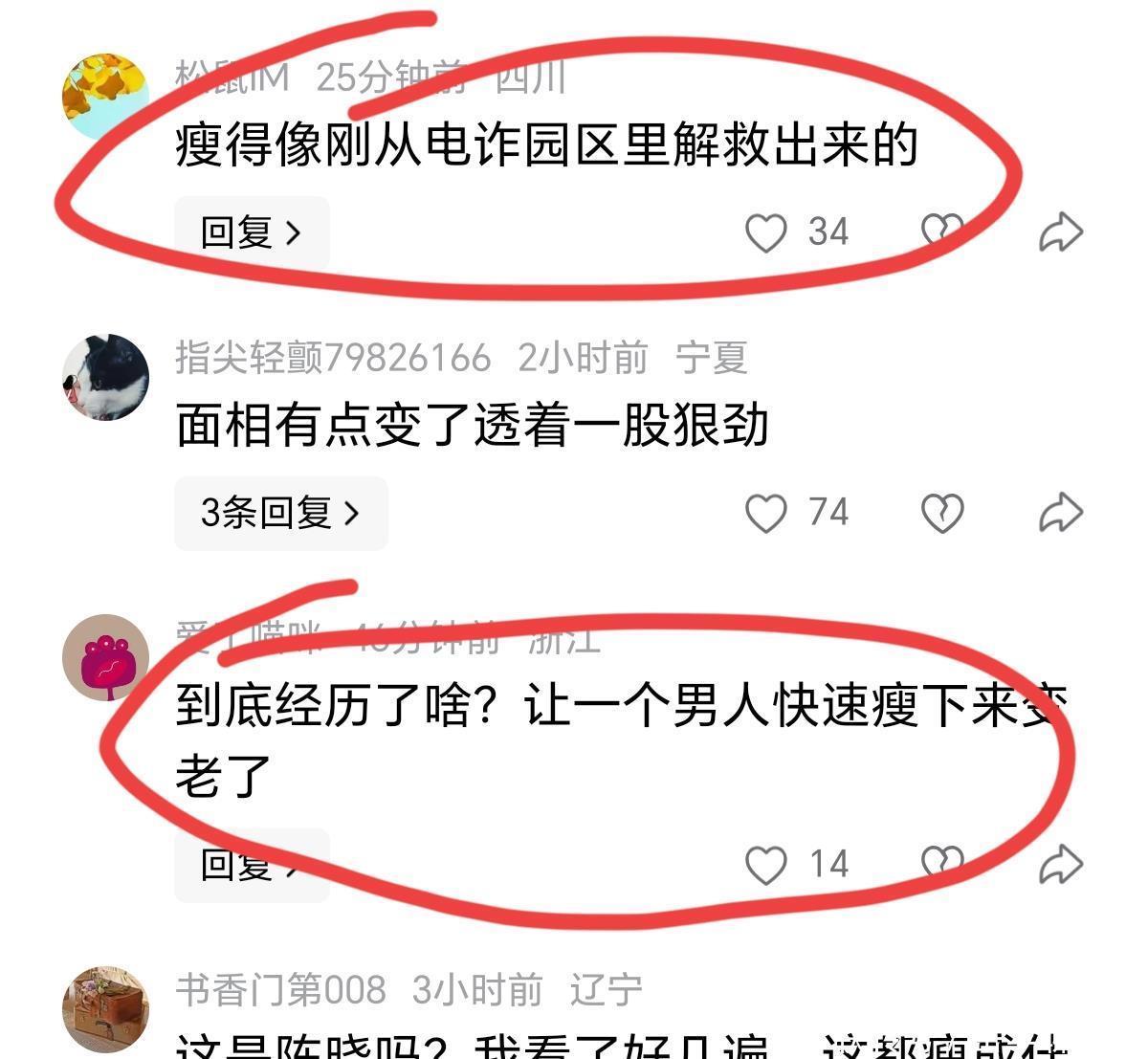 先感受下网友的锐评:有东谈主说他“瘦得像刚从电信园区里转圜出来的”,有东谈主愣了半天问“这是陈晓吗?