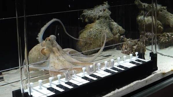 克兰兹觉得章鱼后劲弘大,8只触手各有“小脑袋”,宛如8位钢琴家。但素养初期并不成功,发光琴键、藏假螃蟹齐未能引起章鱼烧兴趣。于是他打造专属钢琴,诓骗螃蟹开荒奖励机制:章鱼烧每按下一个琴键,食品管着落,螃蟹冉冉围聚,完成旋律螃蟹才可持取。